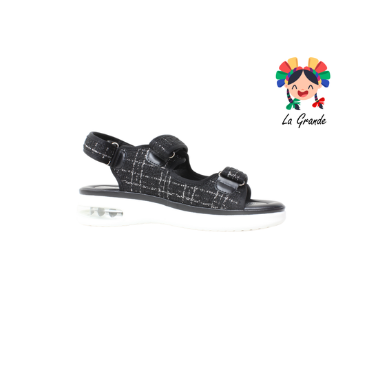0607 SHOSH Negro Textil Sint Sandalia Confort para Dama