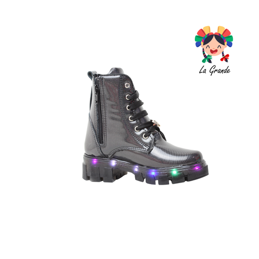B004 DANIELS Negro Cabra Bota con Luz Led para Niña