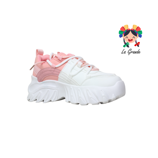 G03-3C FOSUM Blanco Rosa Sint Tenis Casual con Plataforma para Dama