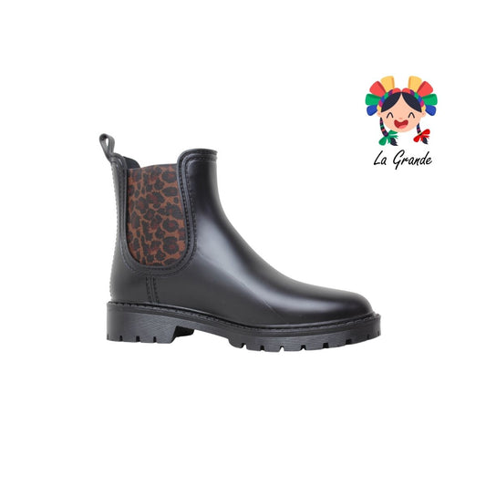 1003 PINK Negro Café Sintético Bota de Hule para Dama