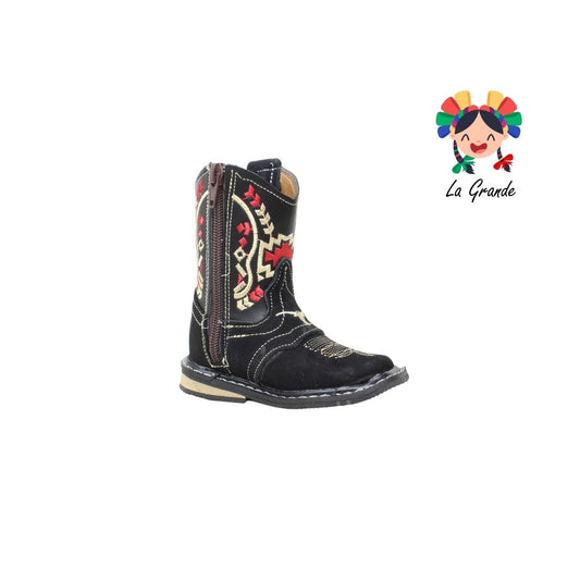 120 ARRIVEÑO Negro Piel Bota Vaquera para Bebé