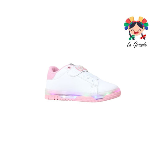 13000 PAOLA RAMIREZ Blanco Rosa Sint Tenis Casual con Luz Led para Bebé y Niña