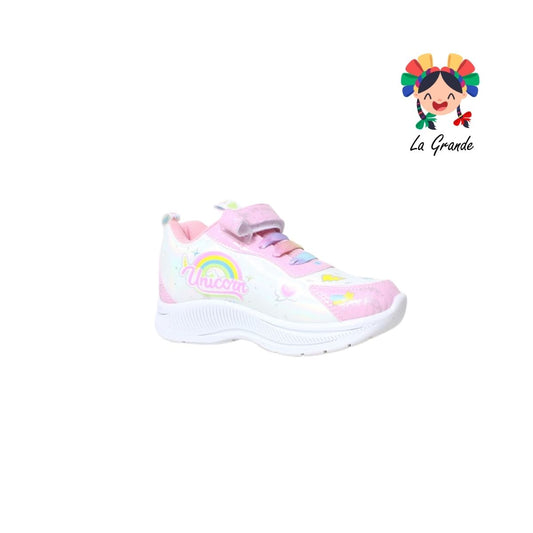 133 ON KIDS Unicornio Blanco Rosa Sint Tenis Casual con Luz Led para Niña