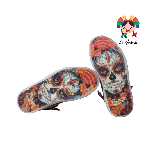 190056 PANAM Negro Naranja Día de Muertos Tenis para Dama,Joven y Caballero Nacional Original