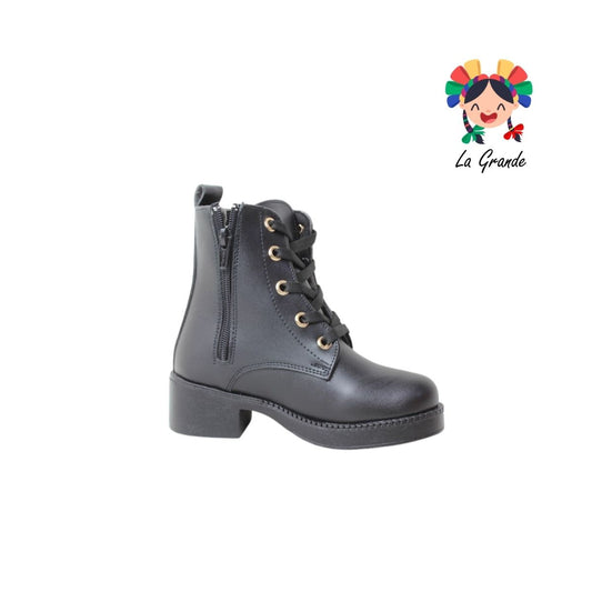 7110 LADY FLORES Negro Charol Bota Casual con Piedritas para Niña