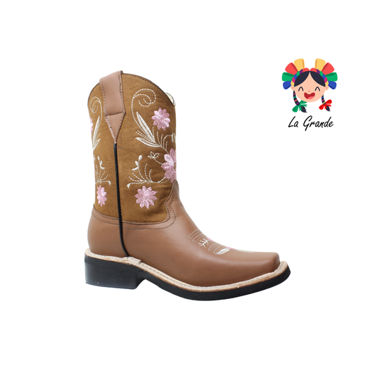 7FLOR RODEO Café Bordado Bota Vaquera para Dama