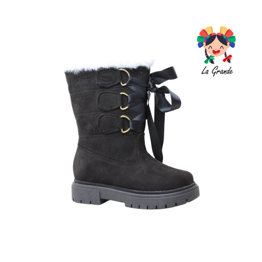 8000 ANZASTIGA Negro Durazno Bota con Peluche para Niña