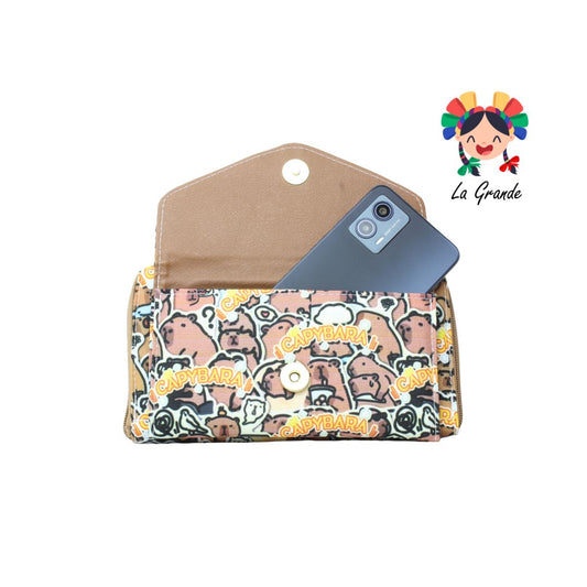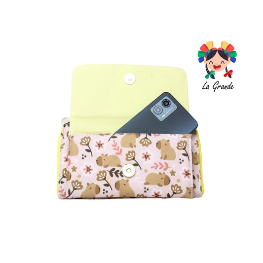 014 Cartera Café Amarillo Capibara con Porta Celular