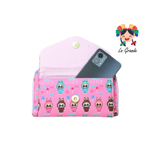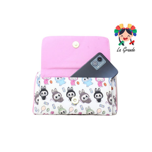 014 Cartera Rosa Blanco Labub con Porta Celular
