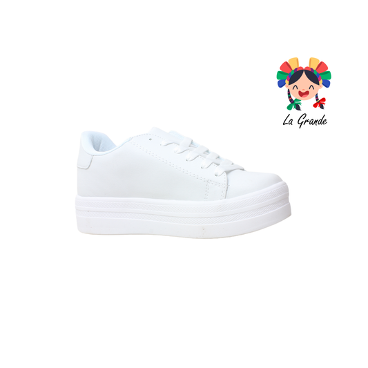 110 SNIK Blanco Sintético Tenis Escolar para Dama y Joven