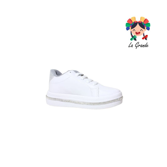 5006 SVIN Blanco Plata Sintético Tenis Escolar para Niña