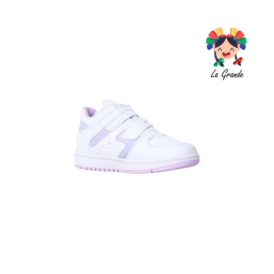 514 APT Blanco Lila Piel Tenis Escolar para Niña