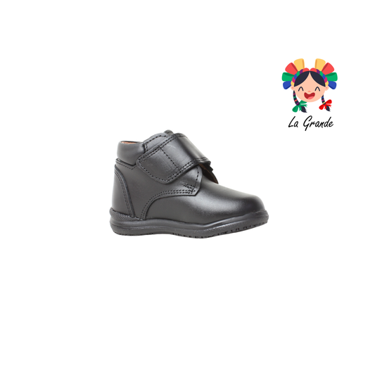 3437 DOGI Negro Piel Zapato Escolar con Velcro para Bebé