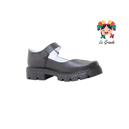 2818 DOGI Negro Piel Zapato Escolar para Niña