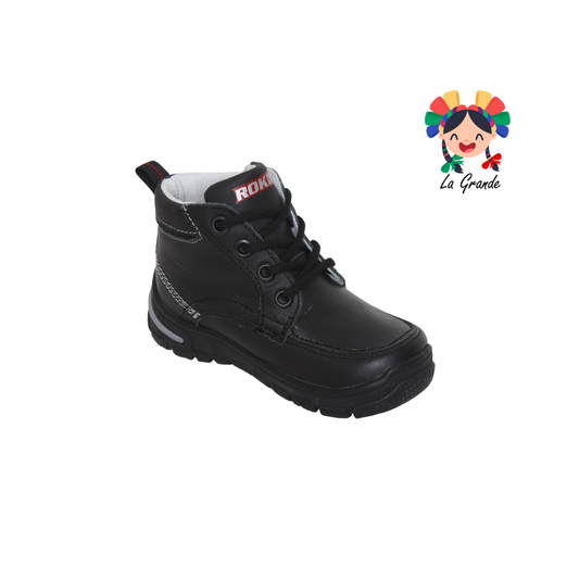 1009 ROKINO Negro Piel Zapato Escolar para Niño