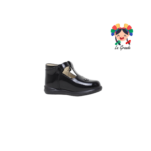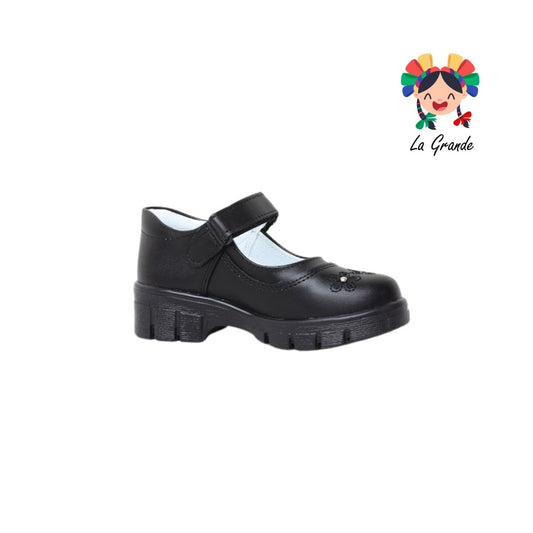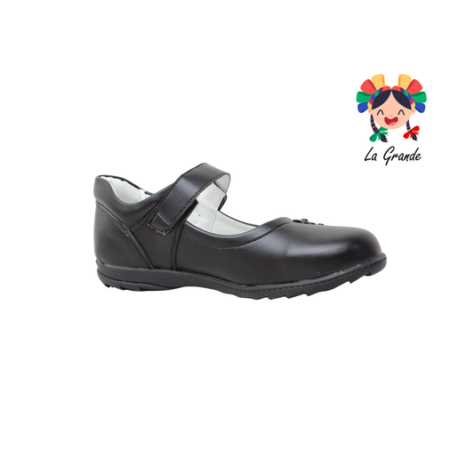 1807 LADY FLORES Negro Sintético Zapato Escolar para Niña y Dama