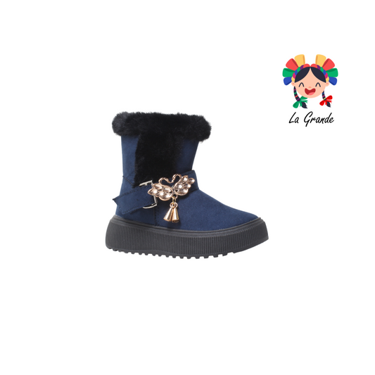 1330 WINS Marino Negro Textil Bota Corta para Niña