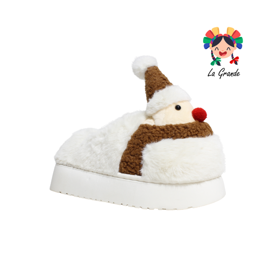 HH-00323 MT Multicolor Santa con Adorno Navideño Pantufla Afelpada para Dama y Joven