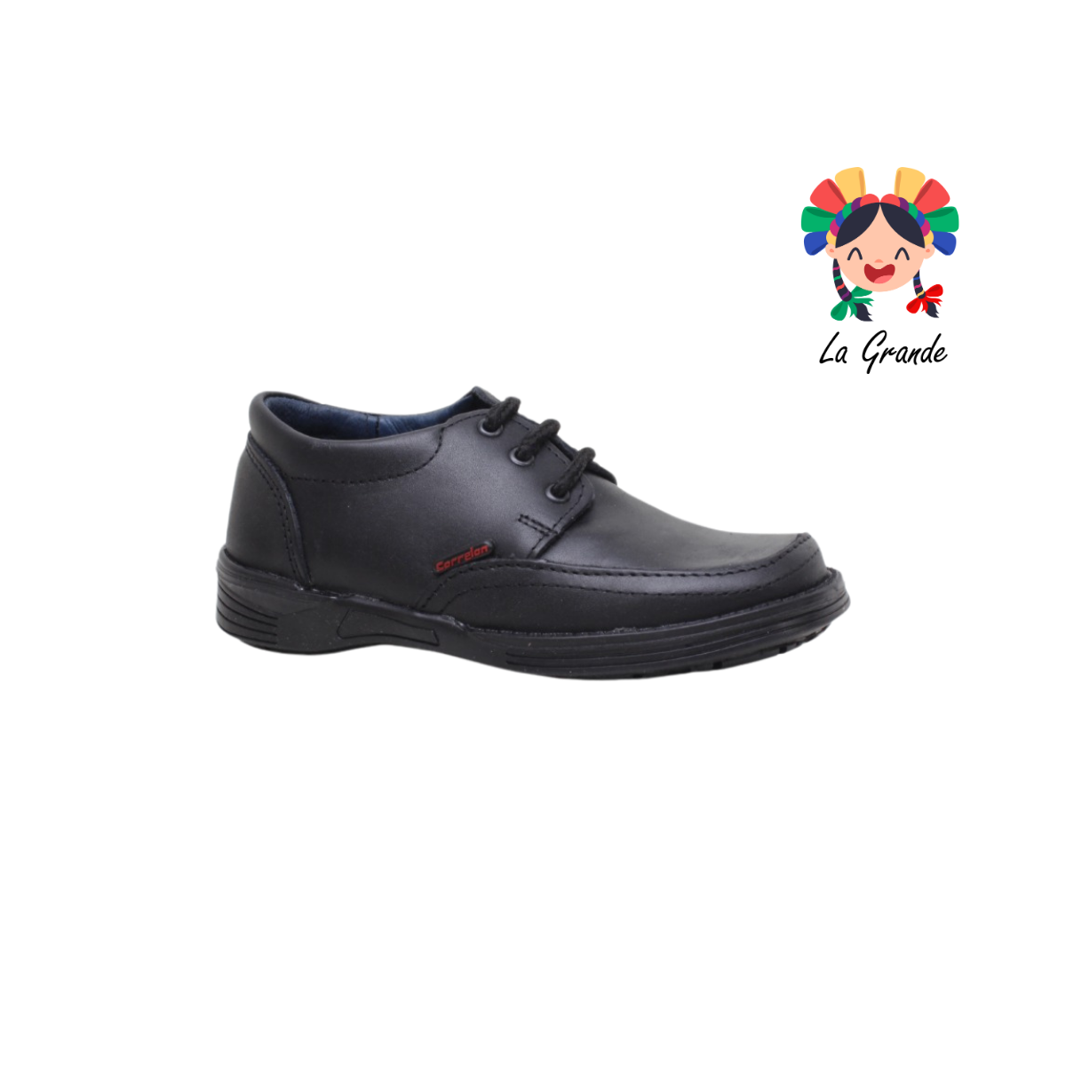 151 CORRELON Negro Piel Zapato Escolar para Niño