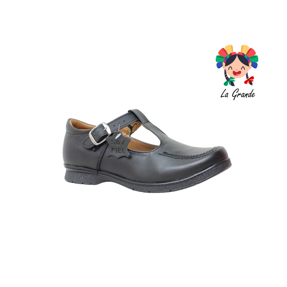 600 BRIANDA Negro Piel Zapato Escolar para Niña