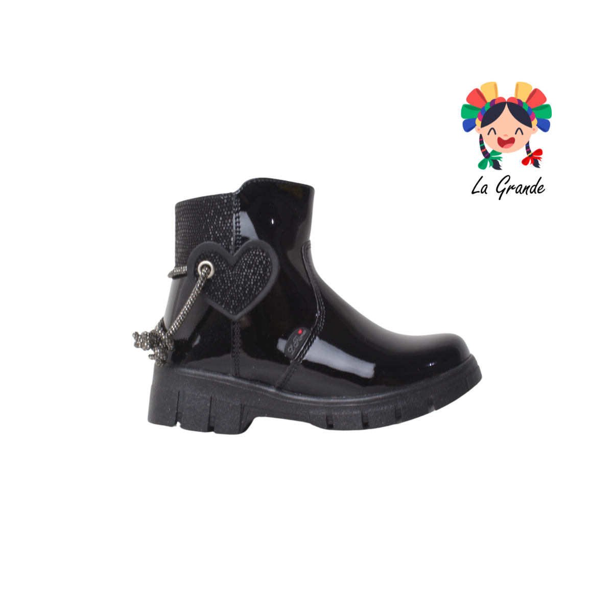 7110 LADY FLORES Negro Charol Bota Casual con Piedritas para Niña