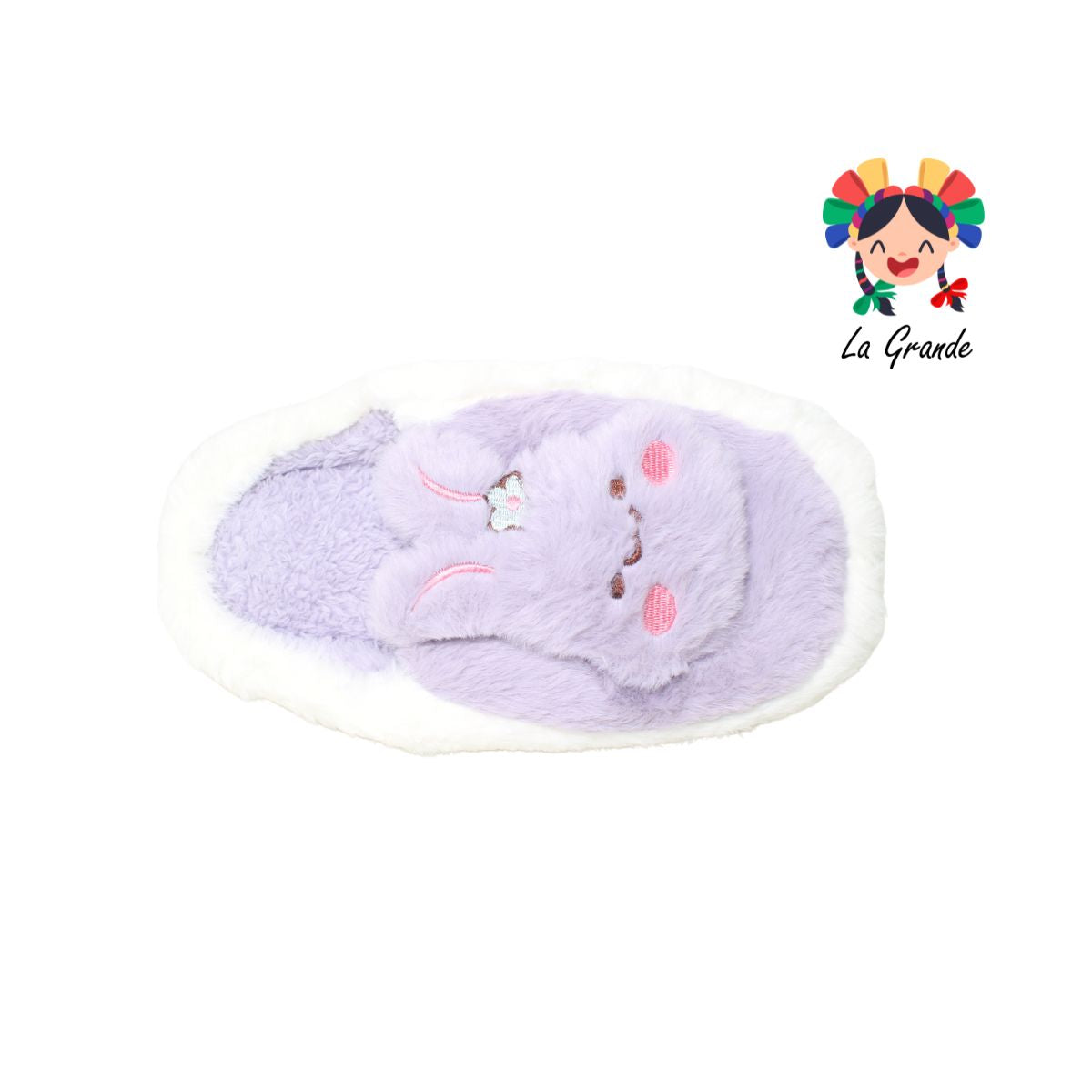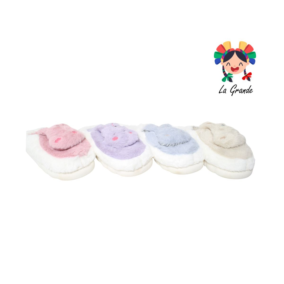 Pantuflas para dama estilo liebre, hechas de material afelpado en tonos azul, rosa, morado y latte. Cómodas, cálidas y con diseño adorable, perfectas para relajarte en casa con estilo y comodidad.