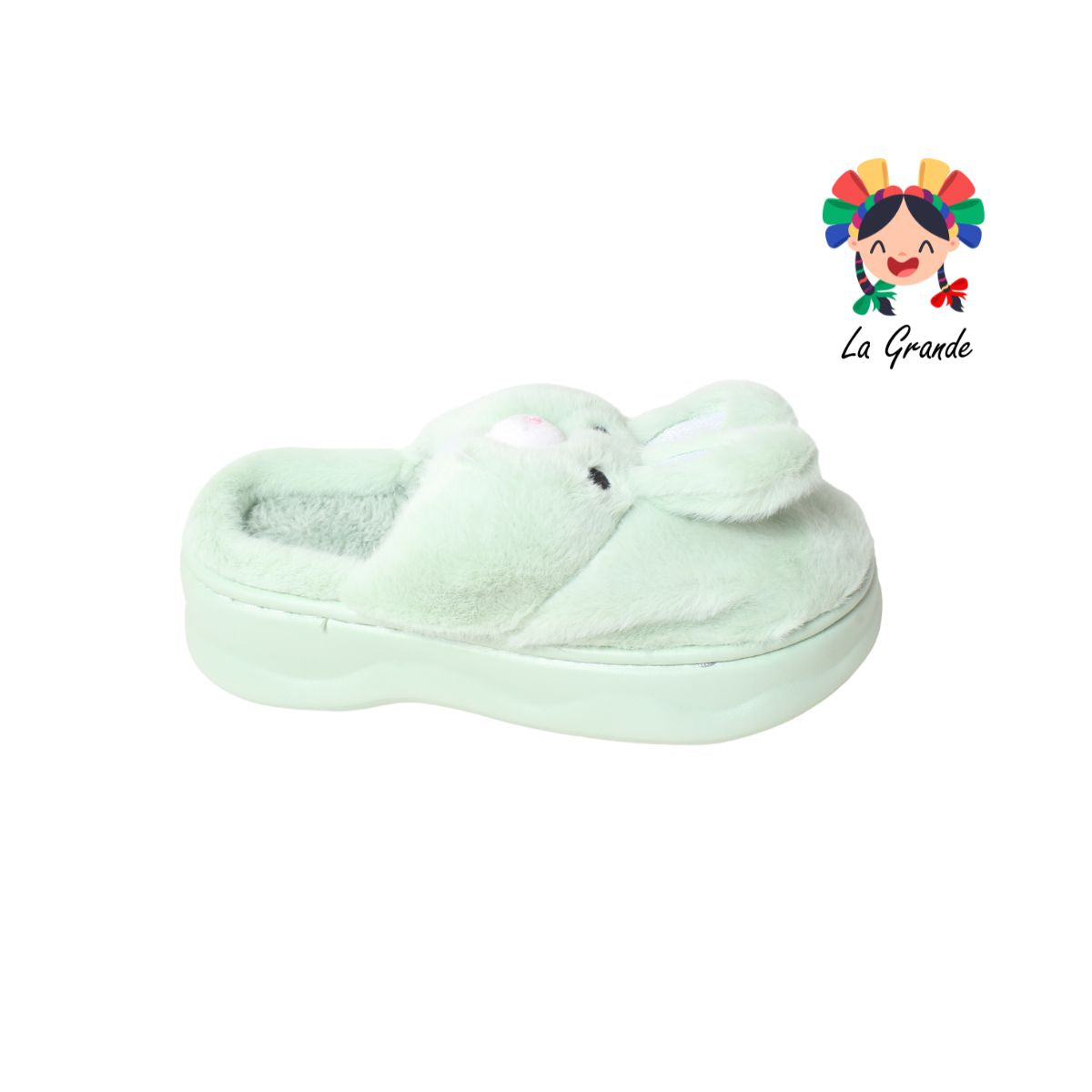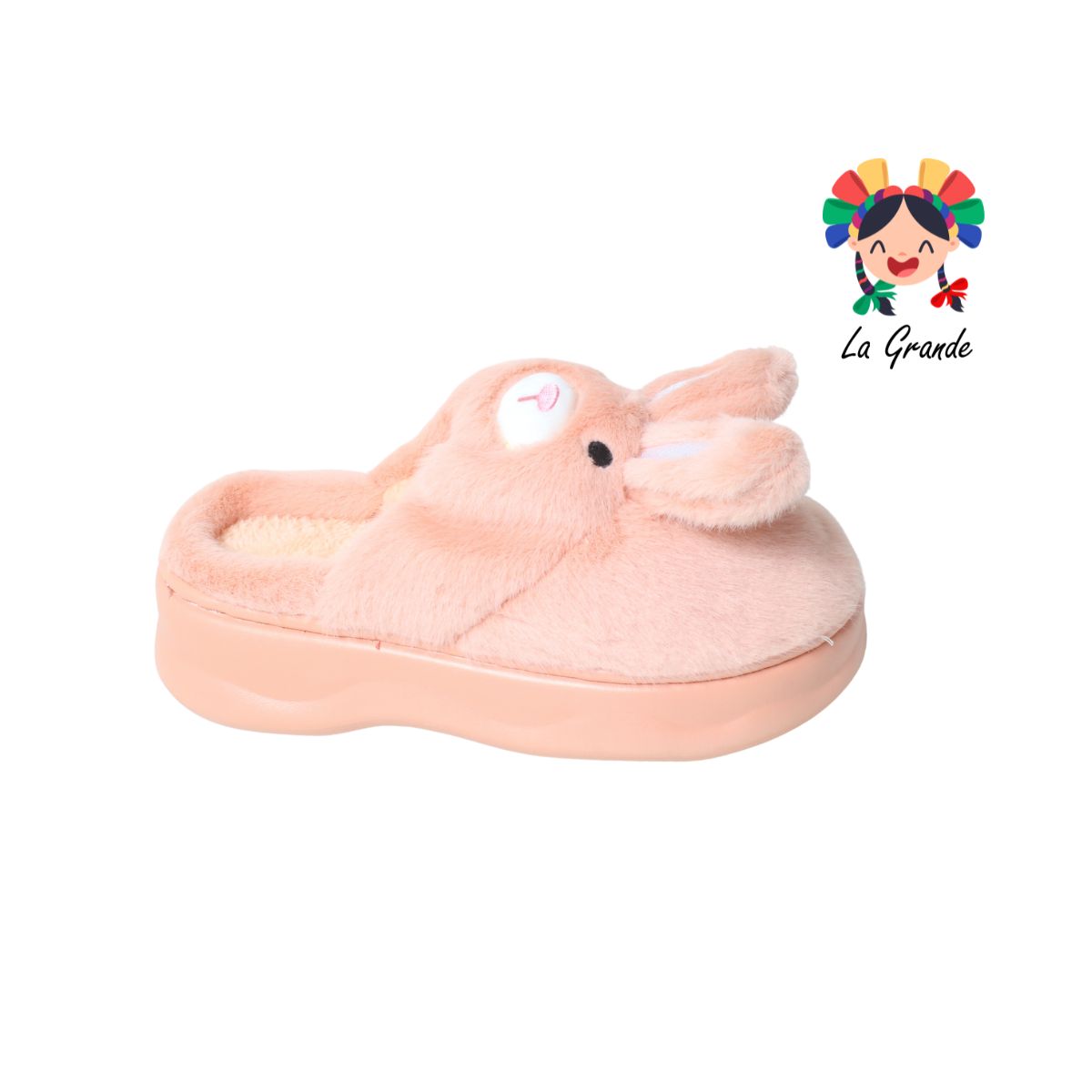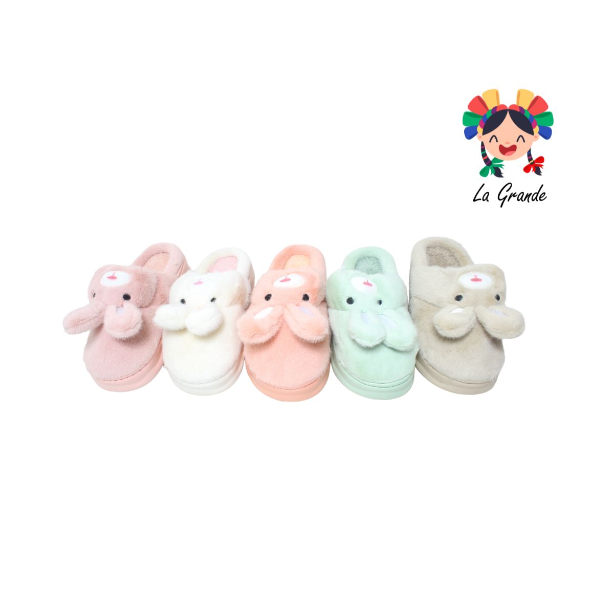 Pantuflas para dama estilo conejito, disponibles en combinaciones de colores rosa-blanco, verde, rosa, naranja y café. Suaves y acogedoras, perfectas para mantener tus pies cómodos con un diseño tierno.