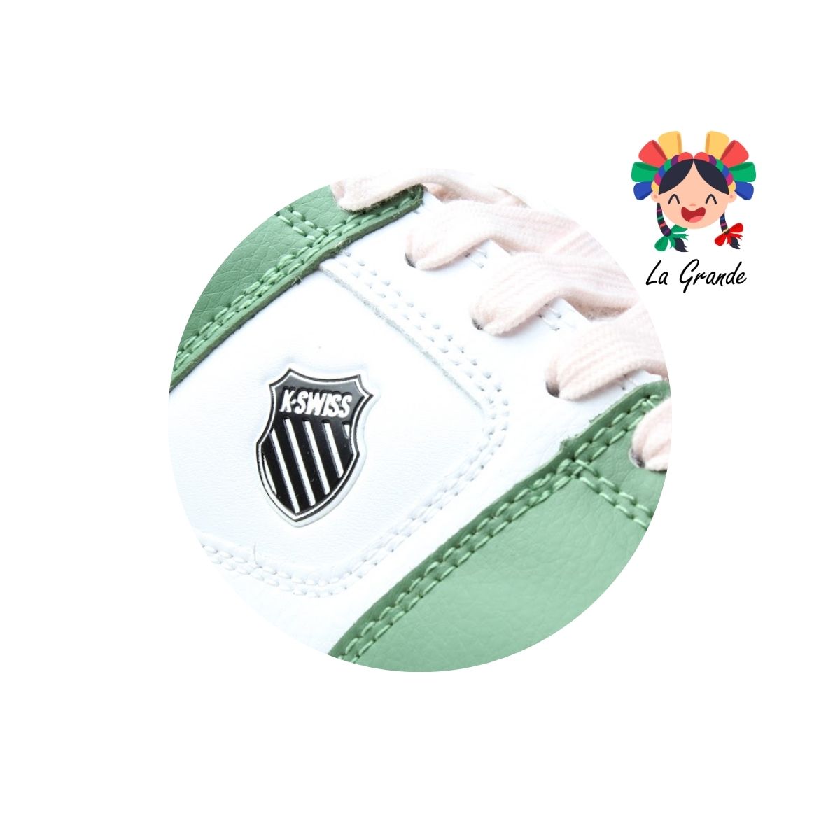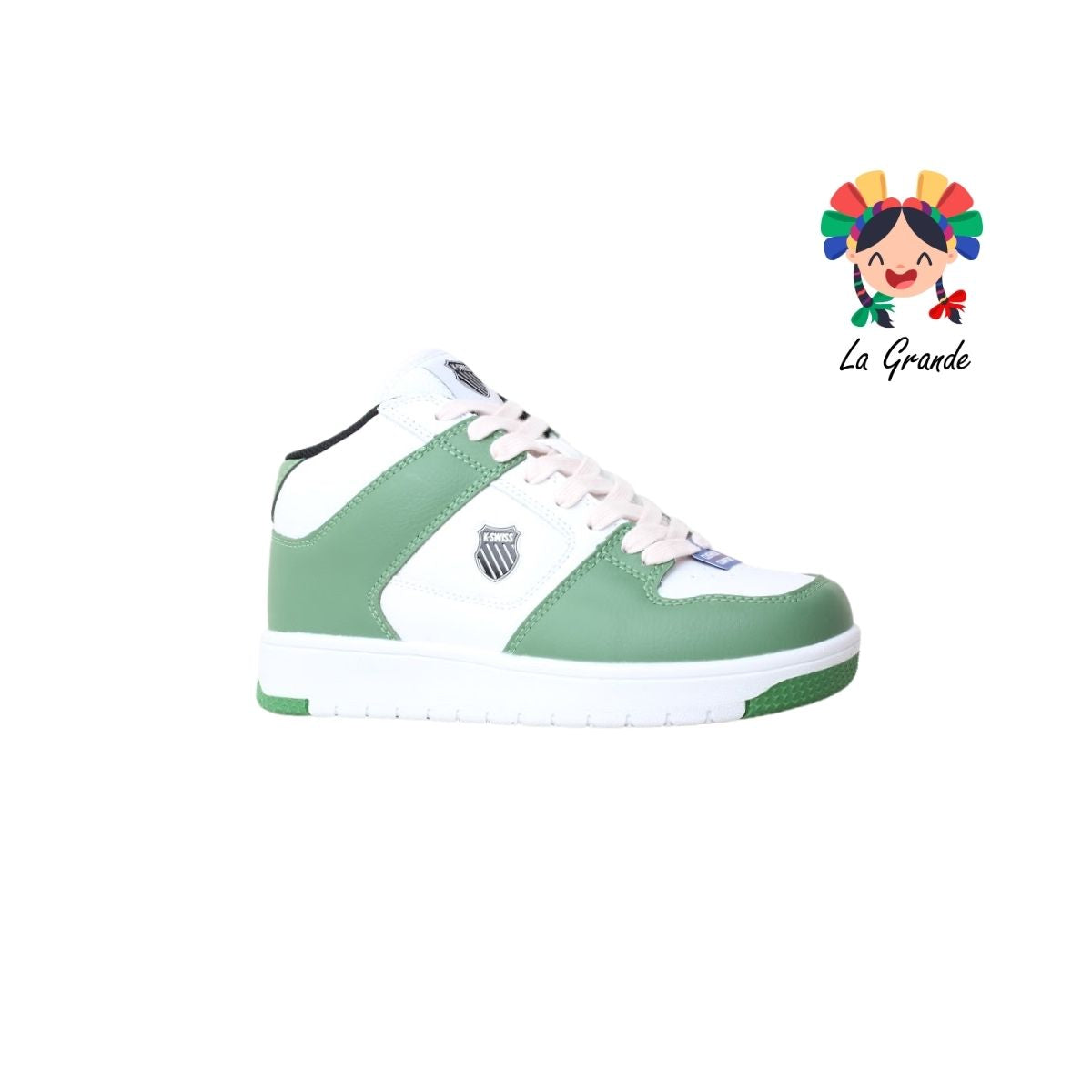9F731178 K-SWISS Verde Blanco Butter Tenis Casual para Dama y Joven