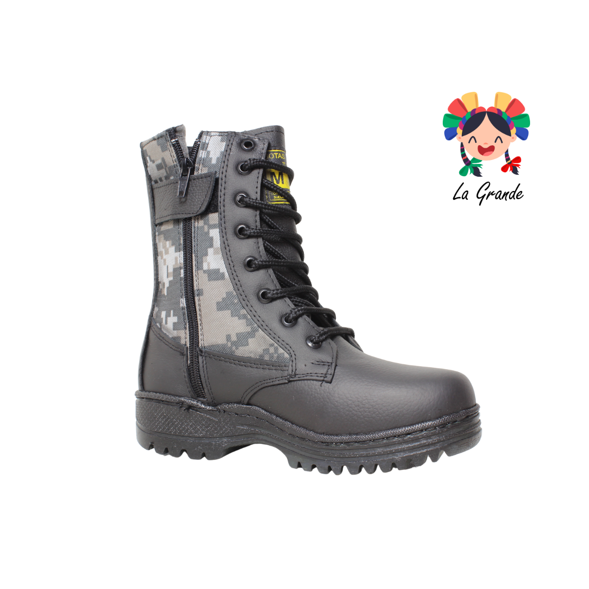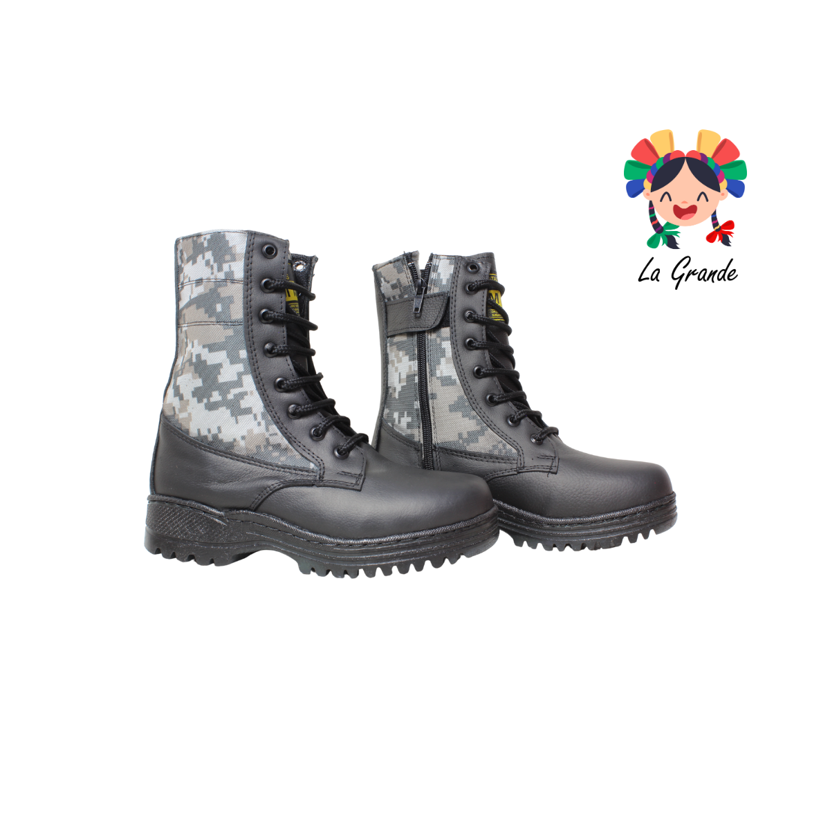 500 MMM Negro Gris Napa Bota tipo Policial para Dama, Joven y Caballero