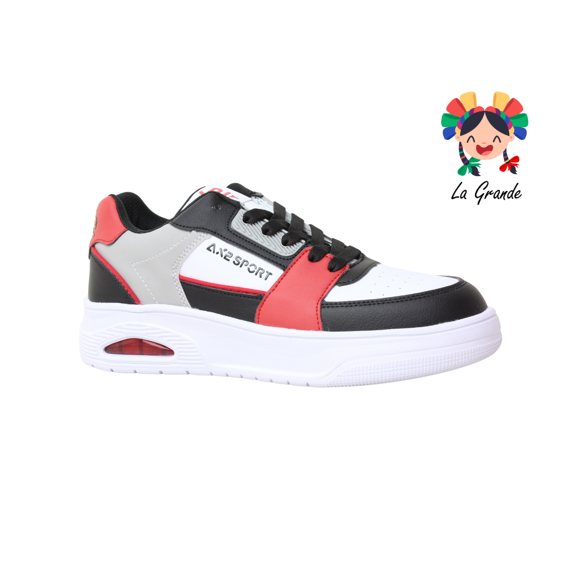 Descubre los tenis deportivos 5000 AX2 en combinación de blanco, negro y rojo, diseñados especialmente para caballeros que buscan estilo y funcionalidad. Su innovadora válvula garantiza una mejor ventilación, manteniendo tus pies frescos y cómodos durante cualquier actividad. Perfectos para entrenamientos intensos o uso diario, estos tenis ofrecen un ajuste seguro y duradero. Eleva tu rendimiento con un calzado que combina diseño moderno y tecnología avanzada. Ideal para quienes no comprometen ni comodidad ni estilo.