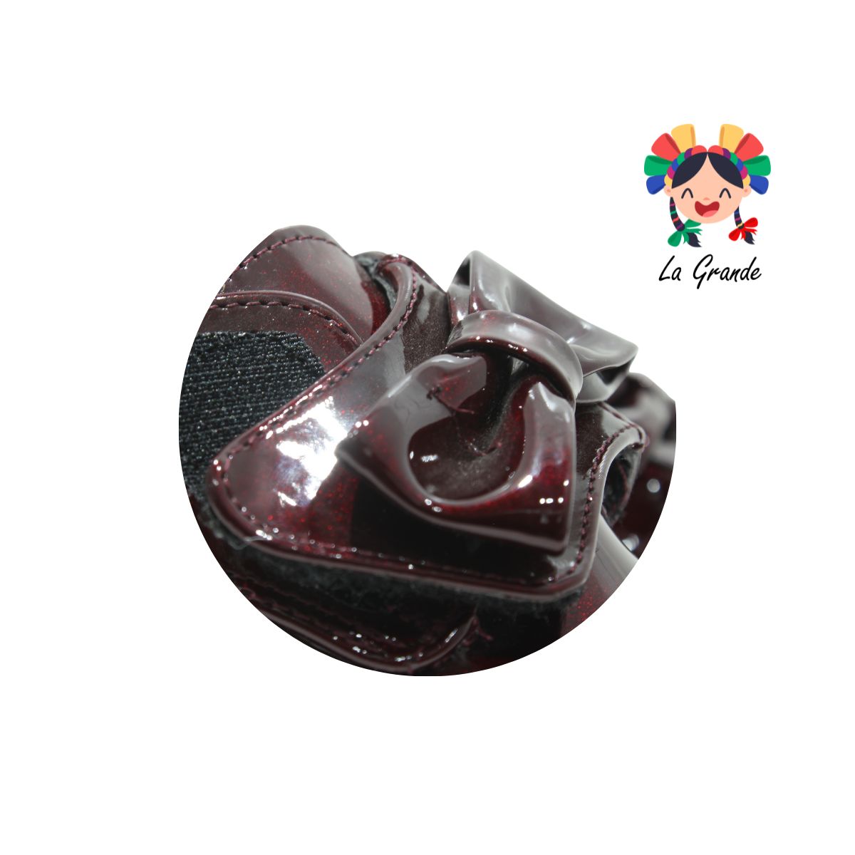 1988 YUL Vino Charol Zapato Casual de Contactel con Moño para Niña