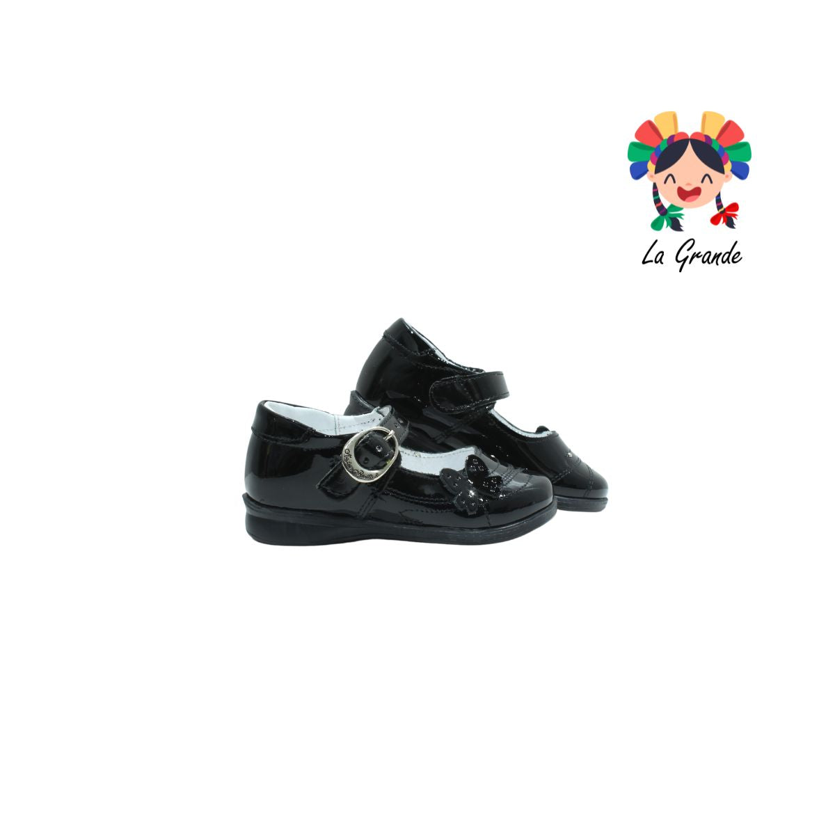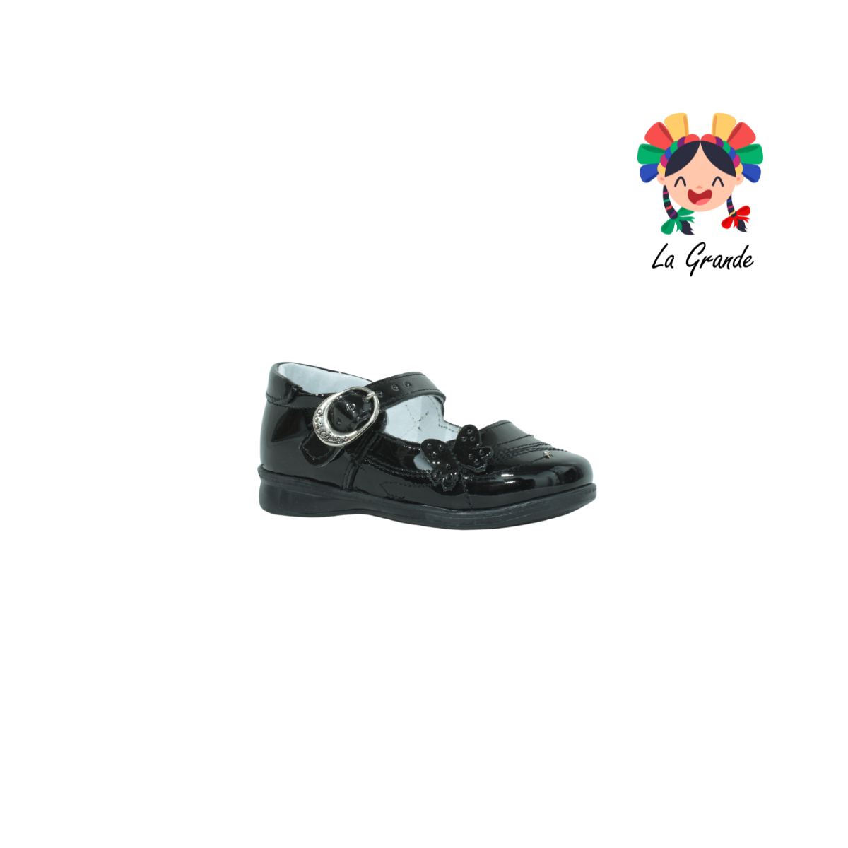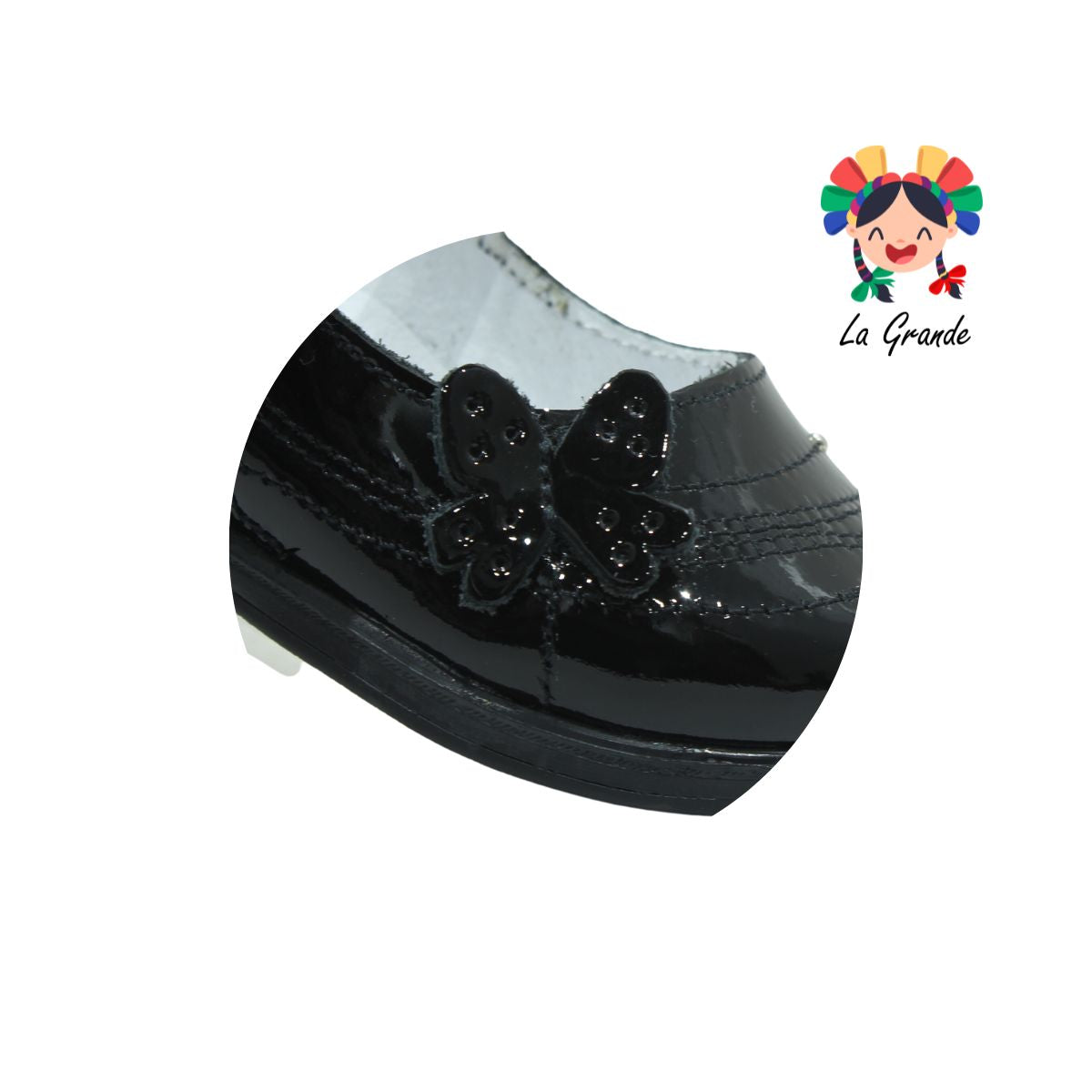 Disfruta de la elegancia y comodidad que el zapato 1212 MUJER BONITA ofrece para tu hija. En negro charol de piel, detalles mariposa y una hebilla, este zapato es perfecto para ocasiones formales. Una combinación moderna, entre lo clásico y lo juvenil.